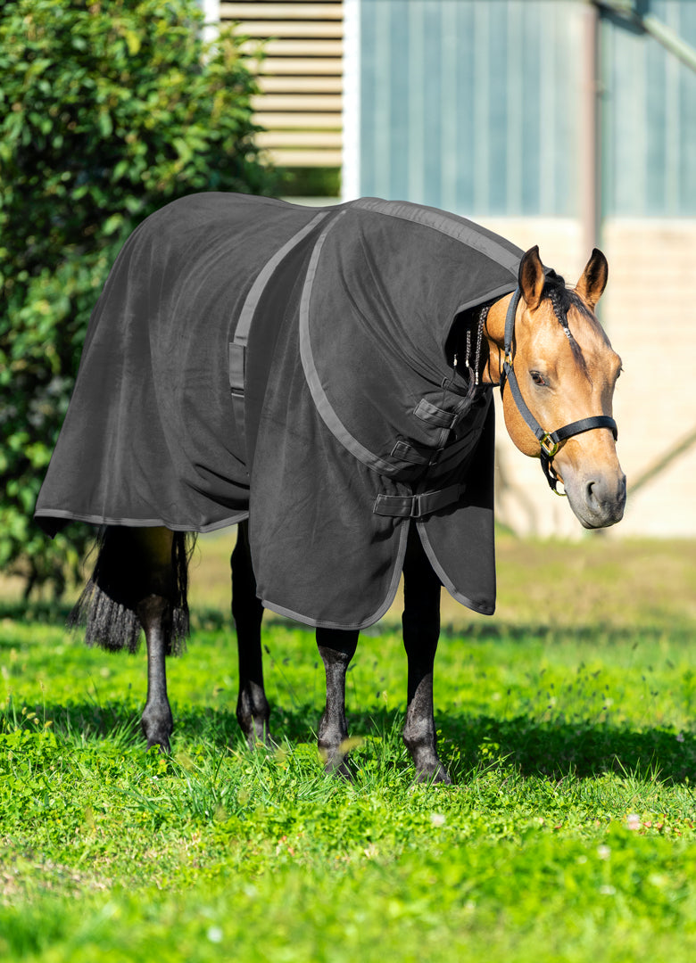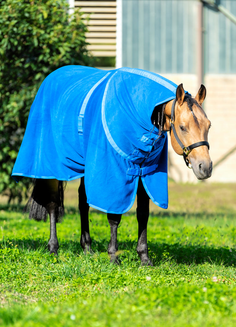 Cooler in pile di ottima qualità che favorisce l'asciugatiura del cavallo portando l'acqua e il sudore in superficie e asciugando quindi il corpo del cavallo più velocemente. Provvisto di cinghie sottopancia rimovibili che permettono al cooler di non cadere durante l'asciugatura del cavallo.