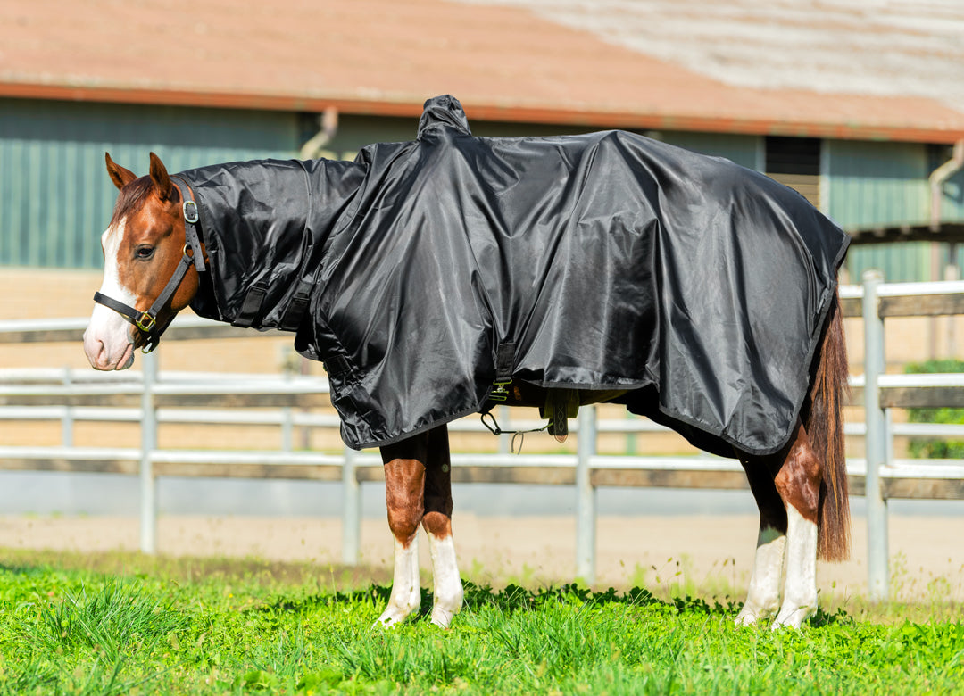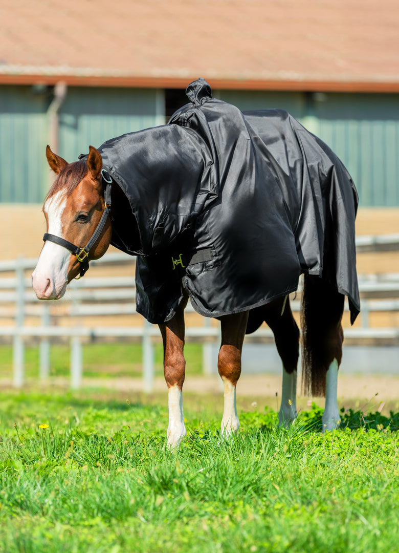 COPERTA IMPERMEABILE DA LAVORO. SAGOMATA SULLA FORMA DELLA SELLA AMERICANA CON FORO PER IL POMO. IDEATA PER ESSERE ADERENTE AL CORPO DEL CAVALLO E ALLA SELLA PERMETTENDO COSI' CHE NON SI BAGNINO. CINGHIA SOTTOPANCIA E SOTTO CODA CHE PERMETTONO LA STABILITA' DELLA COPERTA ANCHE IN PRESANZA DI VENTO.